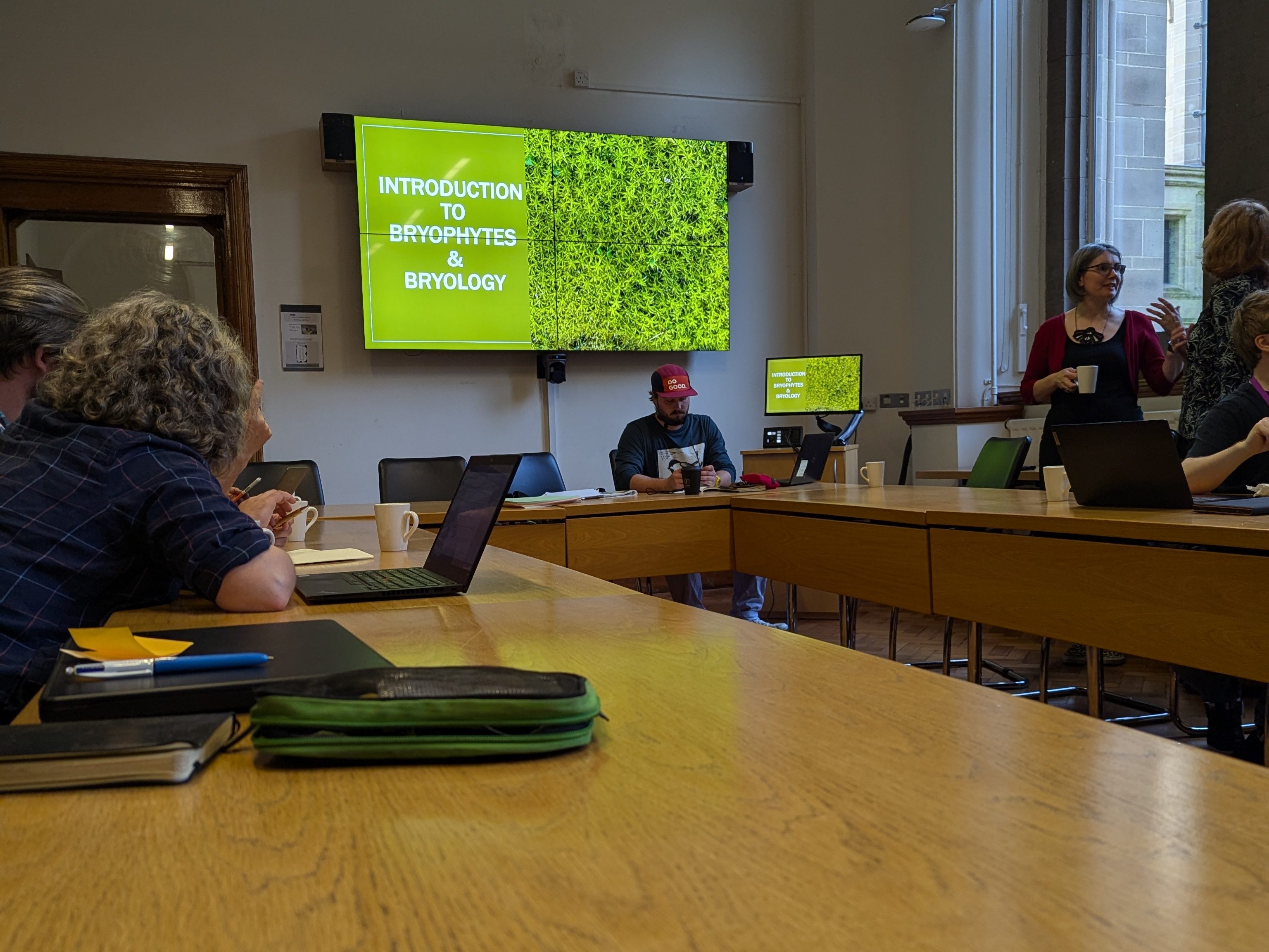 Henry: It isn’t often that this many people interested in learning about mosses are gathered together’ was the sentiment I took from the opening of Joey Pickard’s fantastically informative introduction to bryophyte ecology. On 20th September 2024, we had come together in one of the committee rooms in the Whitworth Hall at the University of Manchester. In the buildings around us, excited groups of new students were shepherding themselves along corridors, while outside, newly dug ‘micro-ponds’ in the renovated courtyard were filling with rainwater, and the leaves were beginning to turn.