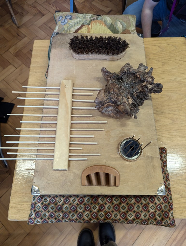 But Joey’s work, like Tripp’s back in 1873, highlighted how very much close attention to these tiny lifeforms with their single-cell leaves yields not only varieties of knowledge about small specificities and large interconnections, but also delight – a word I’ve noticed in use as well by the Victorian amateur botanist, teacher and writer, Leo Grindon, about the ways nineteenth-century working-class botanists and bryologists developed and shared their knowledge of plant life (1882: 203). A similar sense of delight permeated the afternoon session, when Henry invited us to play on and with a variety of homemade instruments. The workshop encouraged us to listen, to pay attention to each other and to sound, to the small and intricate as well as the communal and co-operative, and to what is tentative and lightly anchored as well as to persistence, recurrence and repeated rhythms. What a day of green pleasures and discoveries.